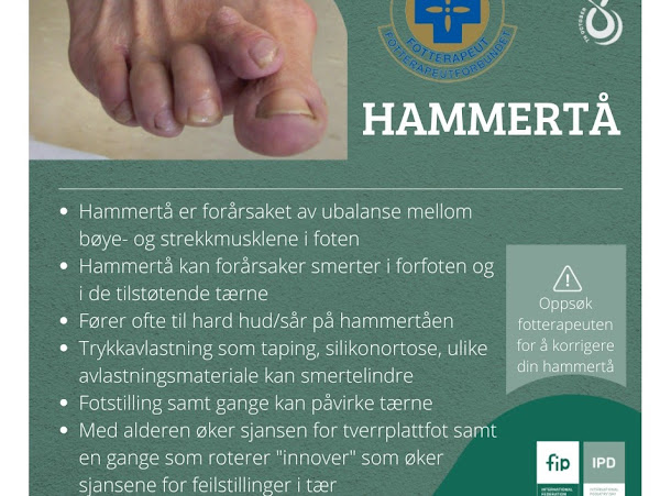 Hammertå rammer flest kvinner. Unngå trange, smale sko. Ha høy nok tåboks, Unngå konkavitet i sko. Masser mellom knoklene på forfoten og ut mot tærne